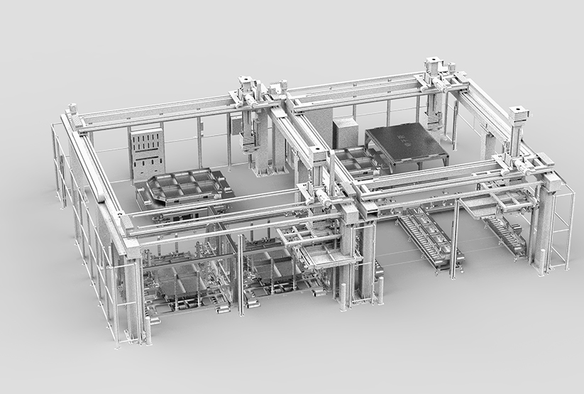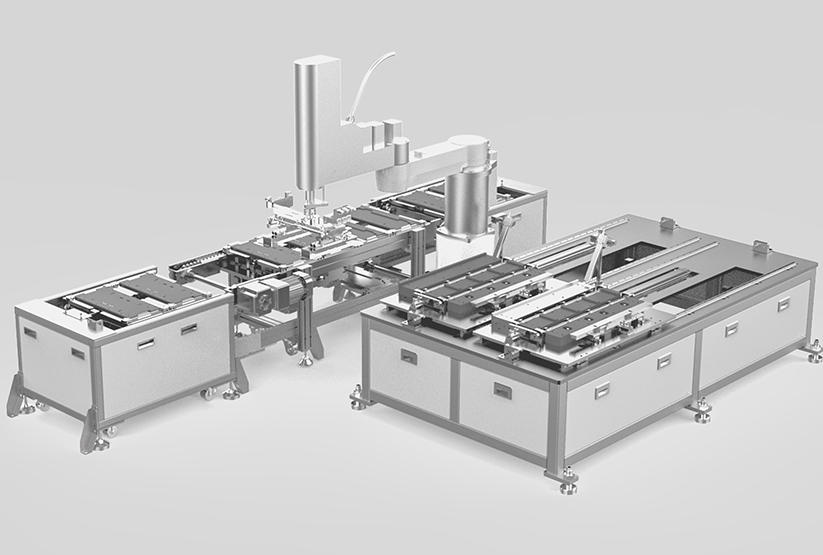 To realize flexible and intelligent assembly and testing of PACK, including automatic housing on-board, automatic module entry, automatic tightening, air tightness test, EOL test, charge and discharge test, intelligent logistics and production line MES.